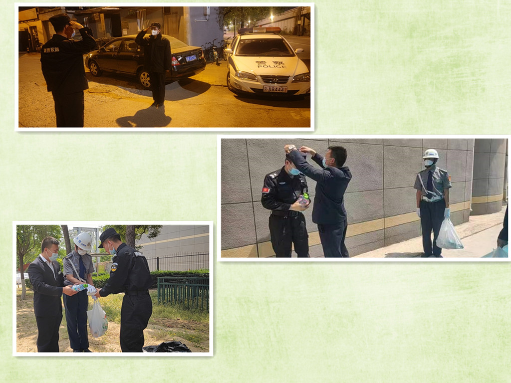保安自始至终都没有缺席。他们牺牲时间休息,随时备战待命,忠诚服务驻勤单位和封控区域,以实际行动守护者北京平安,助力着战役胜利。